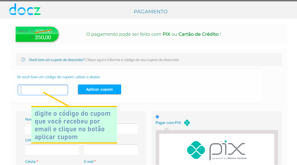 O acompanhamento do uso do pacote e do saldo remanescente poderá ser feito na página de conculta de cupons: docz.online/cupom.